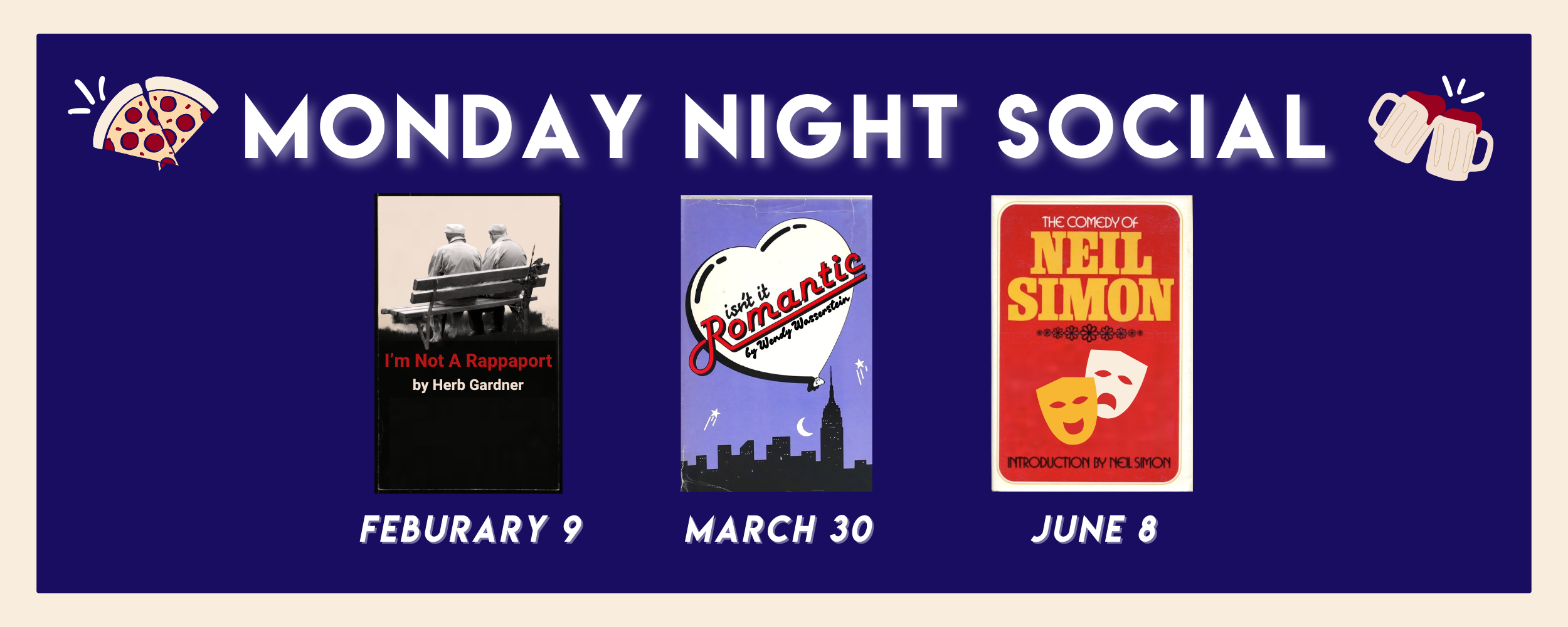 Join us for three Mondays as we present exciting staged readings followed by a lively discussion of classic comedies. This season we feature iconic plays by Jewish American playwrights, Herb Gardner, Wendy Wasserstein and Neil Simon. Each evening includes free pizza, a great crowd, and a lively discussion with the cast afterwards. Grab a drink at the bar and join us for a fun night of comedy and conversation. And, of course, free pizza! Tickets for Subscribers are only $20.