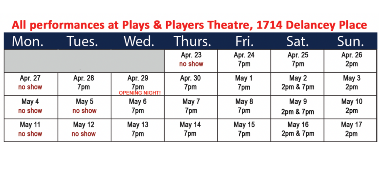 Performed at Plays & Players Theatre, 1714 Delancey Place